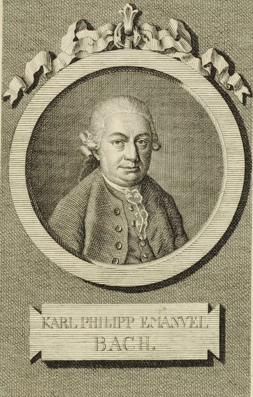 Abbildung: Der Komponist und Virtuose Carl Philipp Emanuel Bach (1714–1788). Kupferstich von Johann Conrad Krüger (1733–1791), Quelle: https://upload.wikimedia.org/wikipedia/commons/e/e0/Bach_by_Kr%C3%BCger.jpg?uselang=de, Zugriff: 26.11.2025