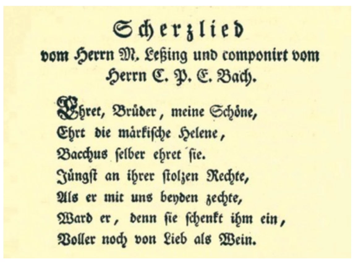 Abbildung: Text zum Scherzlied der „Märkischen Helene“, komponiert 1754 von Carl Philipp Emanuel Bach, Sammlung Museum Viadrina