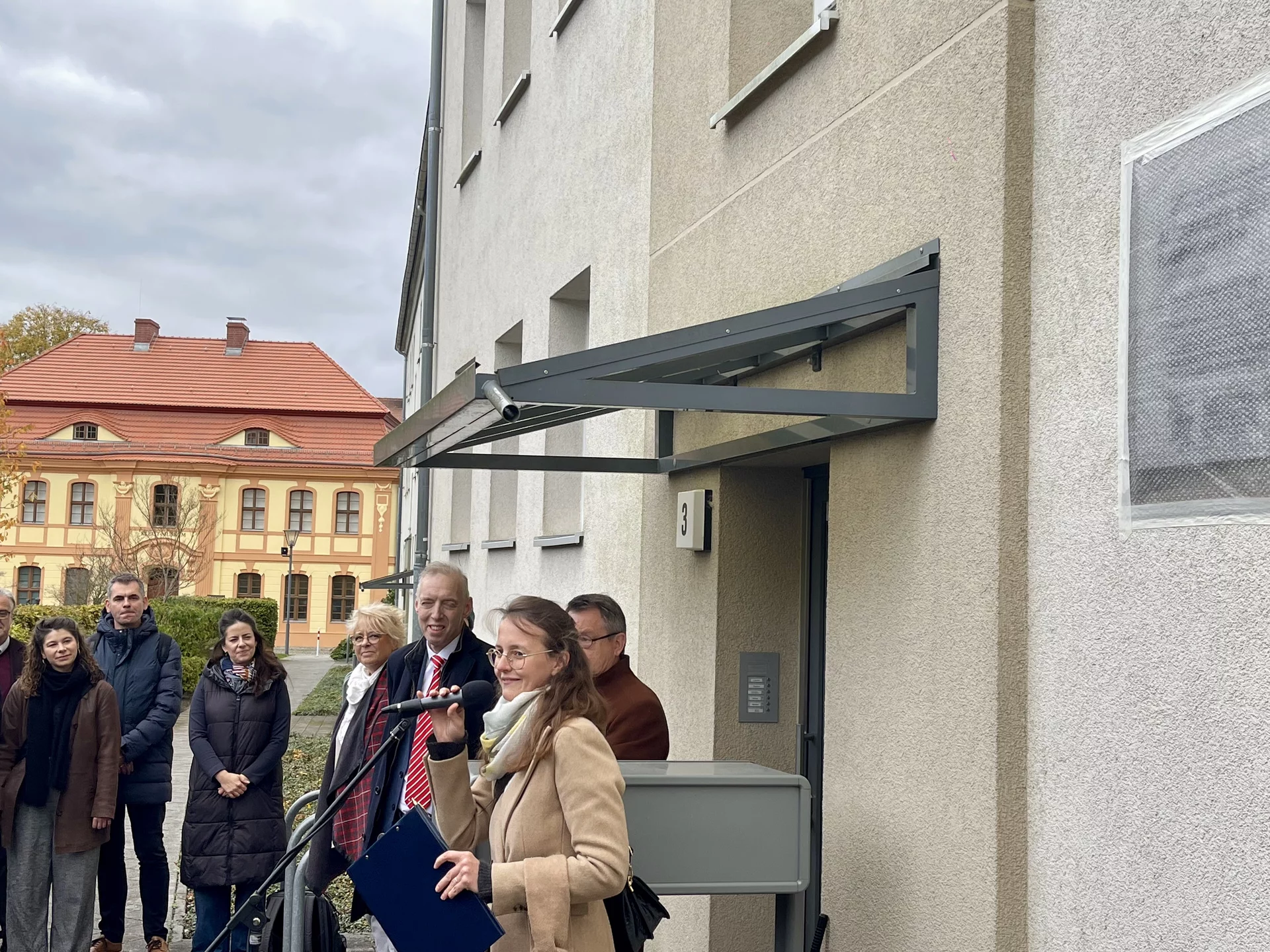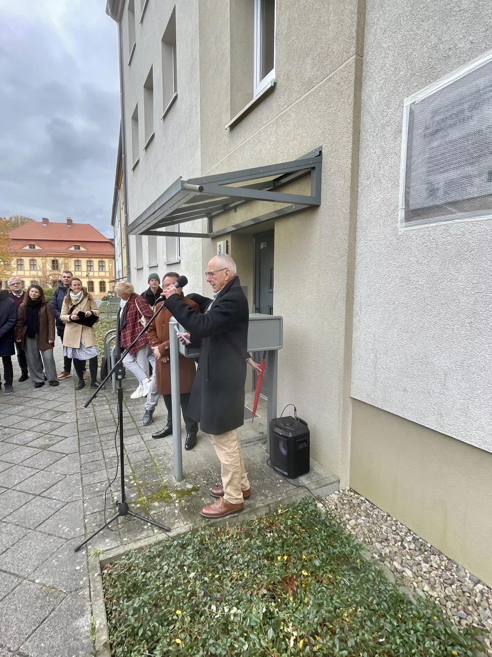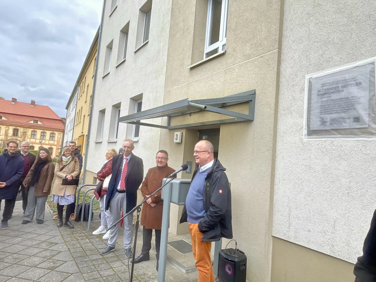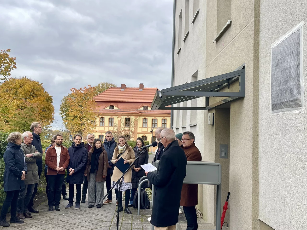 Die Gedenktafel wurde von Dr. Adrian Schliebe und Felix Töppel enthüllt. Es handelt sich um die siebte Tafel im Rahmen des Projekts der Frankfurter Netzwerkstatt "Frankfurter Köpfe" – und um die erste, die einem Gelehrten der alten Viadrina gewidmet ist. Jan Eckert, Geschäftsführer der Frankfurter Wohnungswirtschaft, zeigte sich mit einem Augenzwinkern erfreut über den Ort der neuen Tafel: „Wenn man in einem Haus der Wohnungswirtschaft lebt, erlangt man irgendwann große Berühmtheit“. Heinz Kannenberg